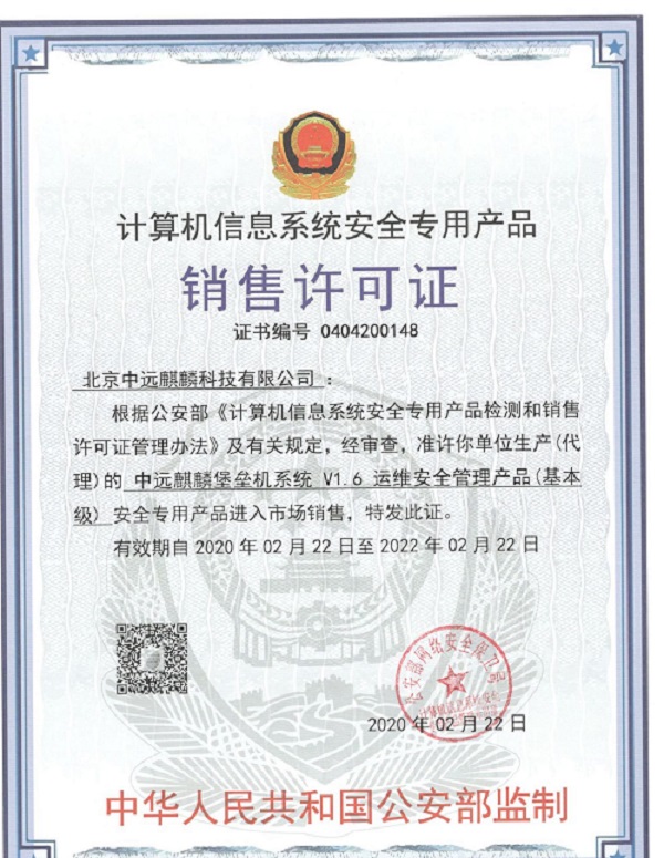 计算机信息系统安全专用产品销售许可证